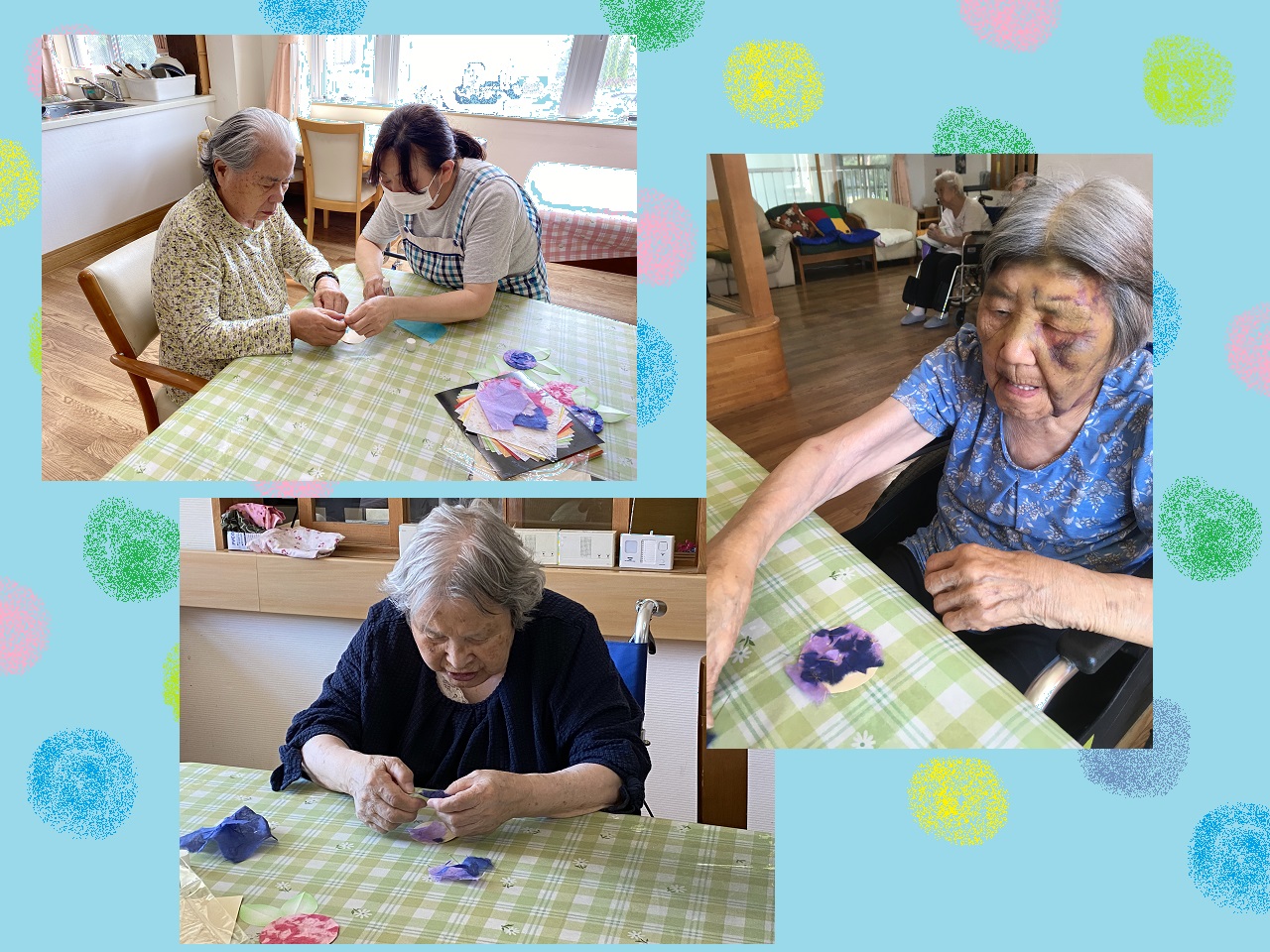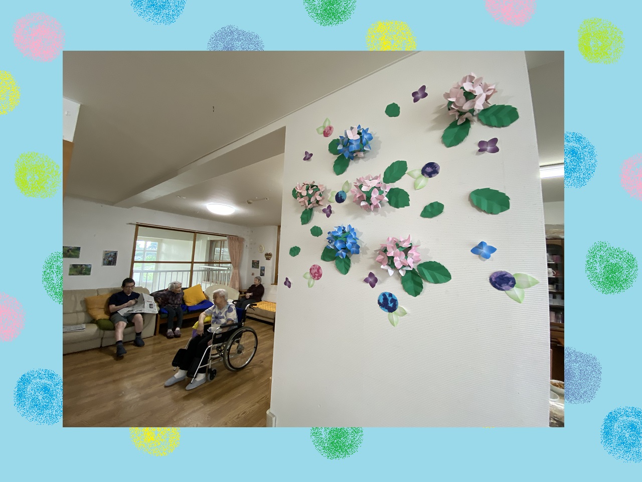 利用者さんと一緒に紫陽花の壁飾りを作ってみました✨
