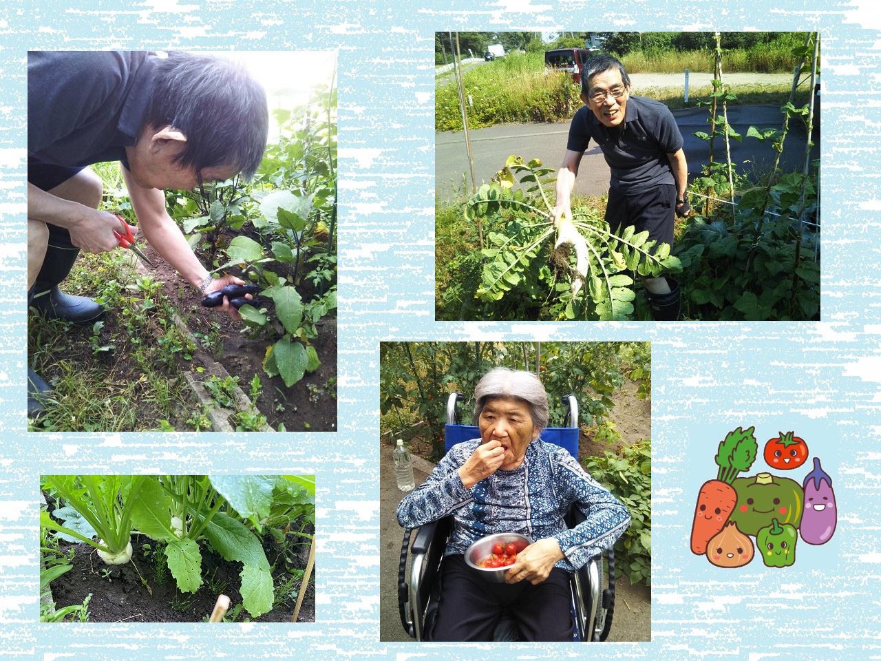 畑で採ったそばからフライングして食べる利用者さん(๑•ㅂ•)و✧